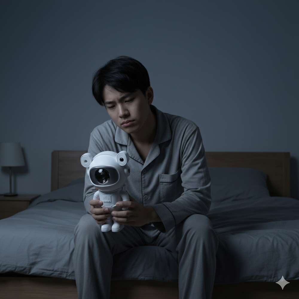 Este encantador proyector con forma de astronauta proyecta 8 efectos de nebulosa acompañados de estrellas LED que parpadean suavemente, creando una atmósfera relajante y mágica.